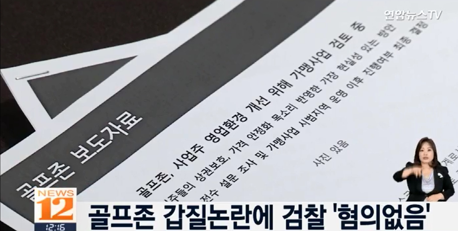 골프존유원그룹 News]골프존 갑질논란에 검찰 ‘혐의 없음’ 연합뉴스TV 추가 보도
