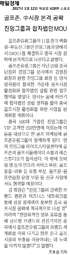 [1월 12일 골프존유원그룹 News]골프존유원그룹-중국 진잉그룹 합자법인 설립 MOU, 중국 시장 공략 본격화!