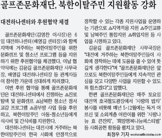 충청투데이(지면)골프존문화재단, 북한이탈주민 지원활동 강화