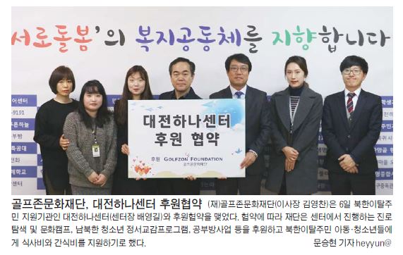대전일보(지면)골프존문화재단, 북한이탈주민 지원 나서