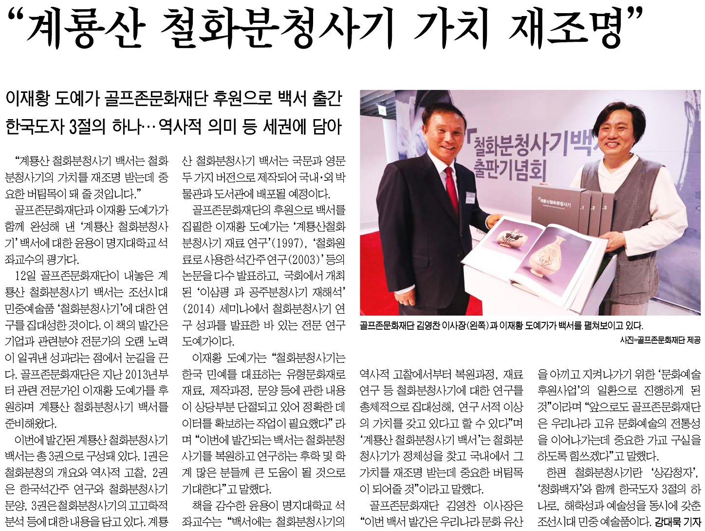 | 세계일보 | 골프존문화재단 ‘계룡산 철화분청사기’ 백서 발간 | |||||||