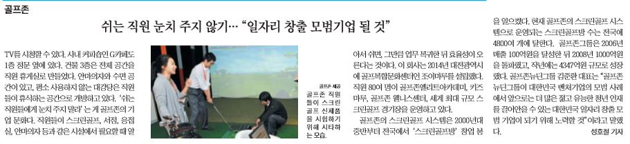 조선일보 지면에 골프존뉴딘그룹의 기업문화 관련 기사가 게재되어 공유드립니다.
