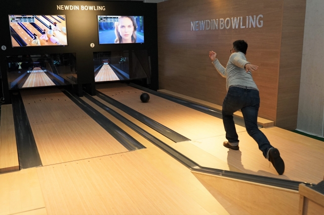 ‘뉴딘VR볼링’은 골프존뉴딘그룹의 기술력을 통해 탄생한 신개념 스크린볼링 시스템으로, 실제 볼링장에서 느낄 수 있는 볼링공의 움직임과 핀액션, 현장음 등을 사실적으로 재연했으며 다양한 소프트웨어를 통한 게임 요소를 탑재했다.
