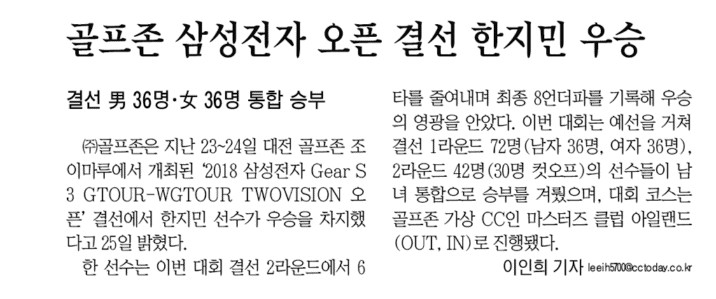 [2월 26일 골프존뉴딘그룹 News] 골프존, ‘2018 삼성전자 Gear S3 GTOUR-WGTOUR TWOVISION 오픈’ 결선 개최
