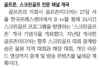 27대전일보골프존, 스크린골프 전문채널 ‘스크린골프존’ 개국지면/온라인