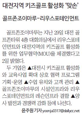 | 2 | 충청신문 | 골프존조이마루-리우스포테인먼트, 키즈골프 활성화 맞손 | 지면/온라인 | |