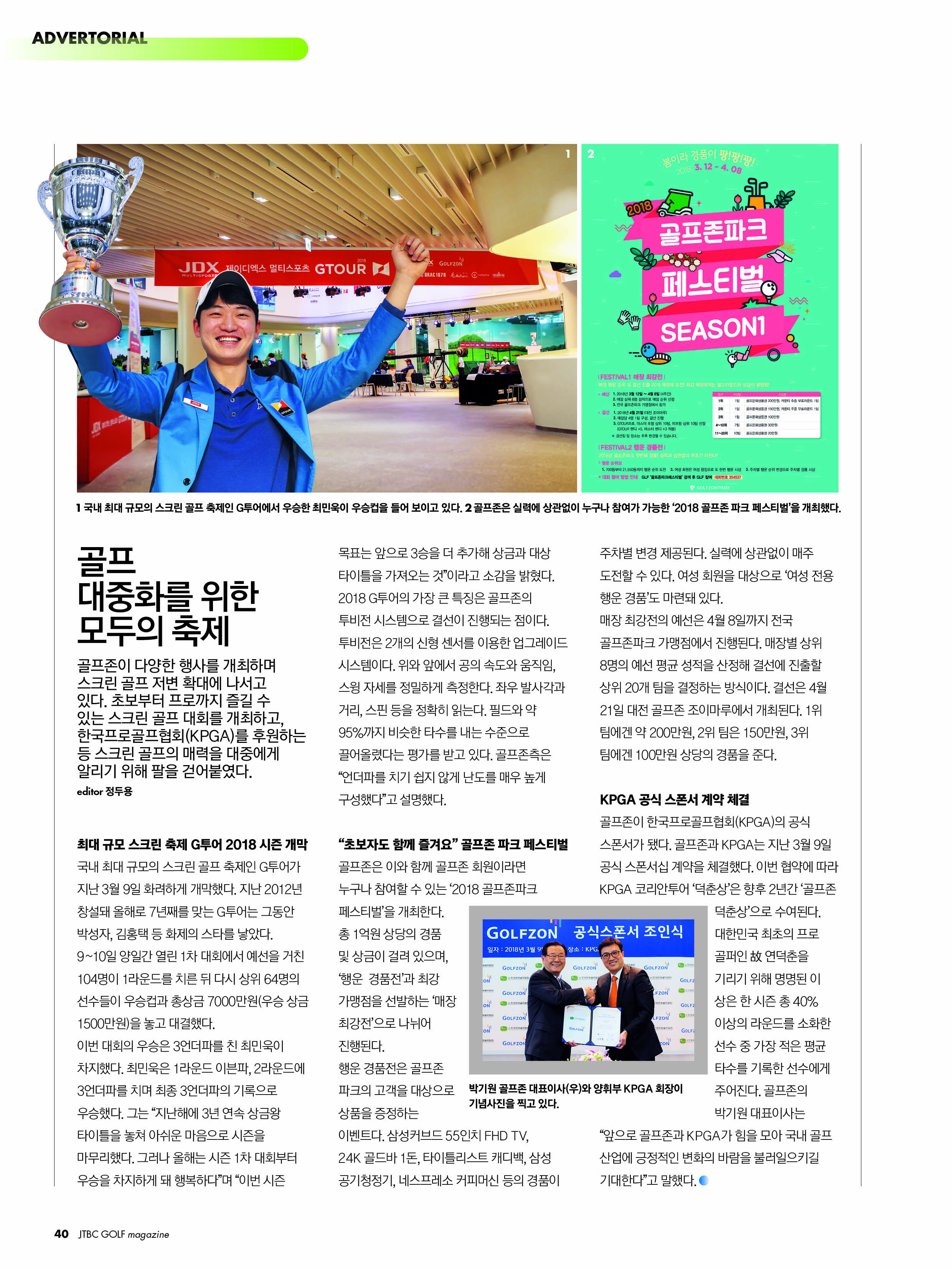 | 골프대중화 | 1 | JTBC GOLF | 골프 대중화를 위한 모두의 축제 (GTOUR 1차, 클럽페스티벌2, KPGA 스폰서십 계약) | 지면 |