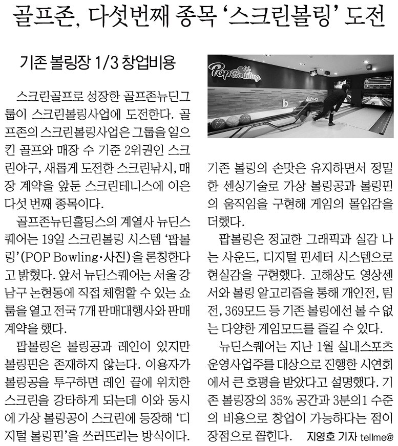 <골프존, 다섯번째 종목 ‘스크린볼링’ 도전 _ 머니투데이>