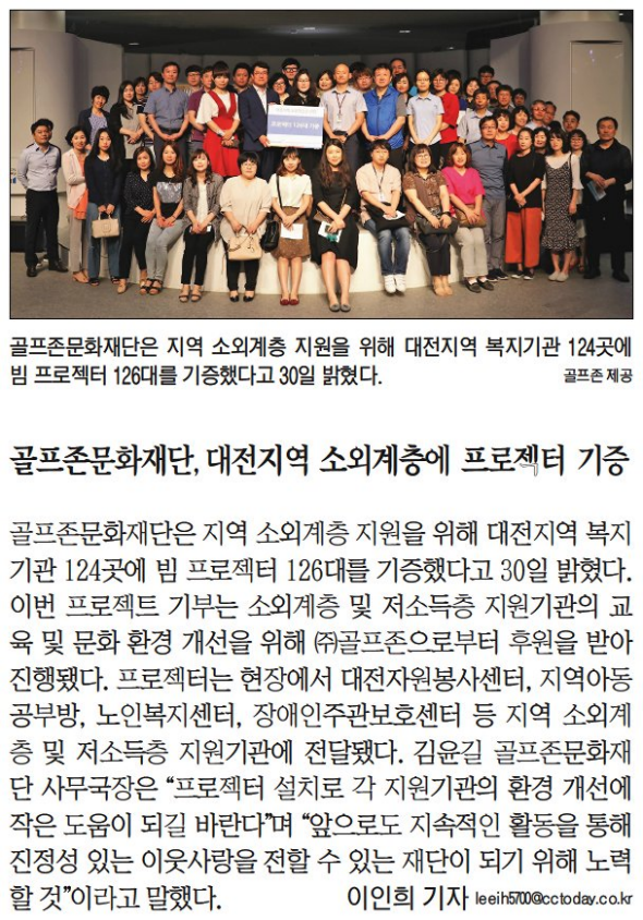 1 충청투데이 골프존문화재단, 대전지역 소외계층에 프로젝터 기증 지면/온라인 20면