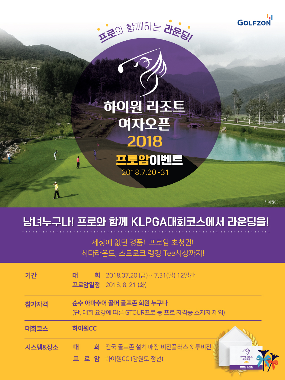 [7월30일 골프존뉴딘그룹 News]골프존, ‘하이원 리조트 여자오픈 2018 프로암’ 초청권 이벤트 개최