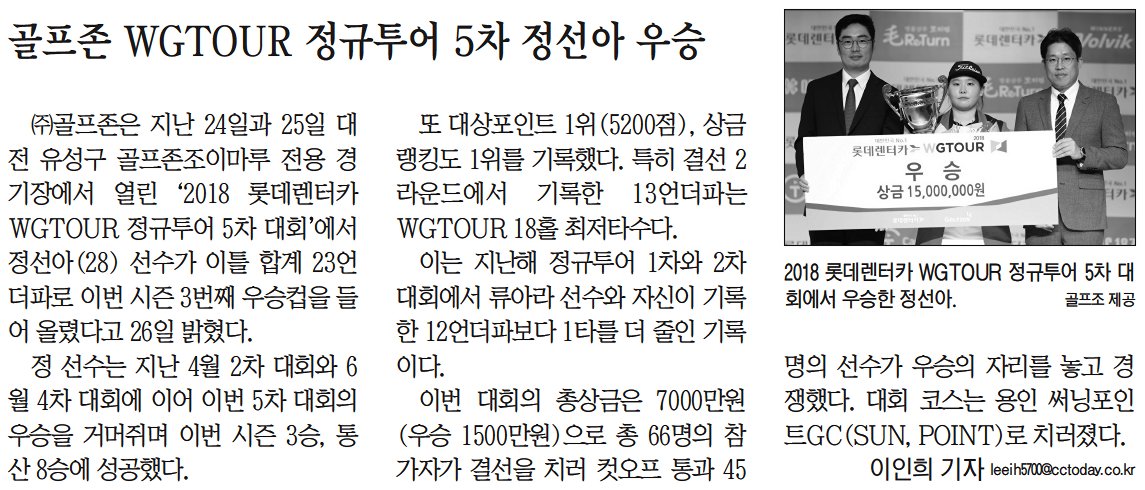 13이뉴스투데이골프존, ‘2018 롯데렌터카 WGTOUR 정규투어 5차 대회’ 정선아 우승온라인