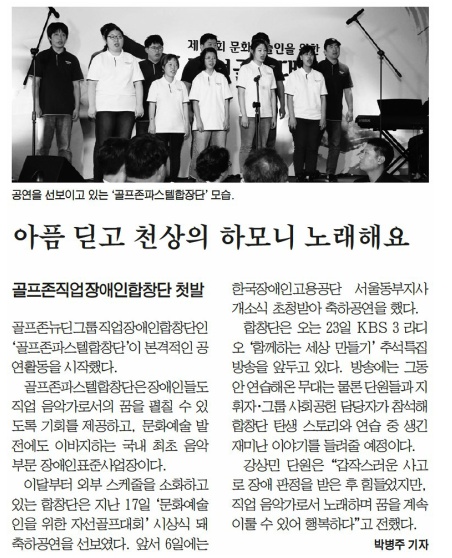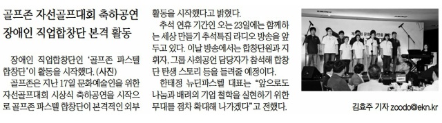 헤럴드경제장애인 직업합창단 골프존파스텔 공연온라인