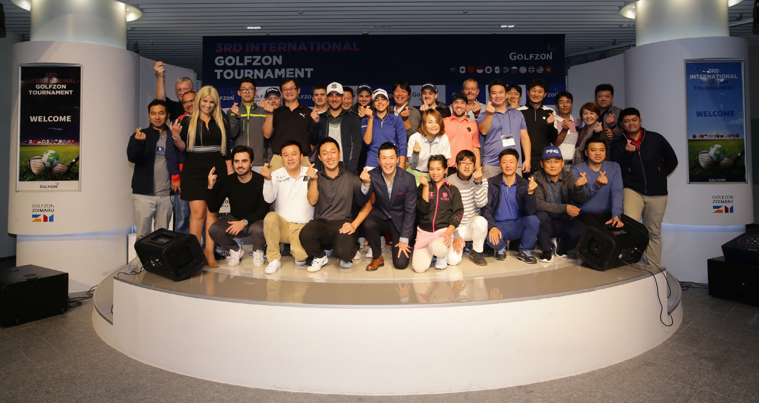 사진2. 지난 18일 대전 유성구 골프존 조이마루에서 열린 ‘제3회 골프존 국제대회’의 참가자들이 단체 기념 사진을 촬영하고 있다.