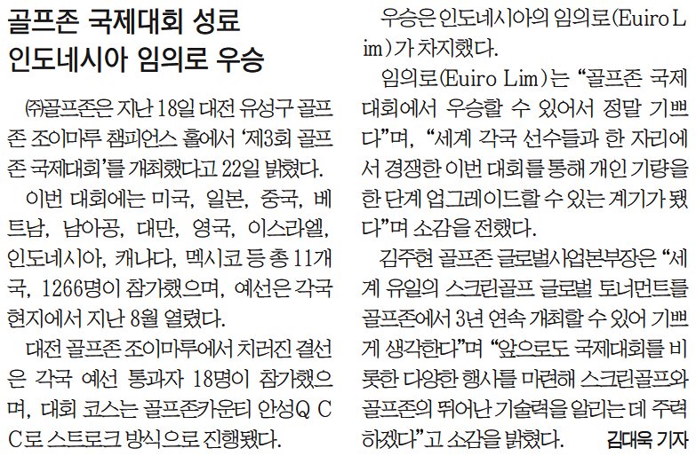 <대전일보– 골프존 국제대회>