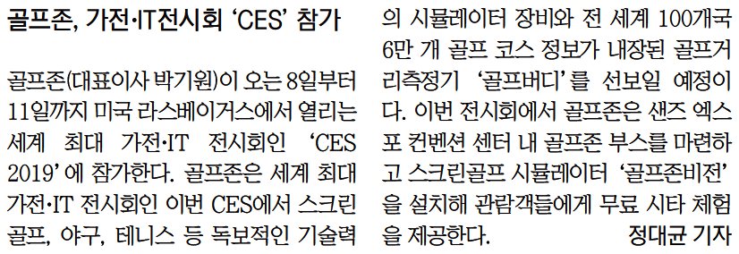 | 8 | 서울경제 | 골프존, CES 2019 참가 | 온라인 | |