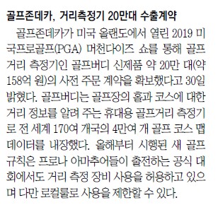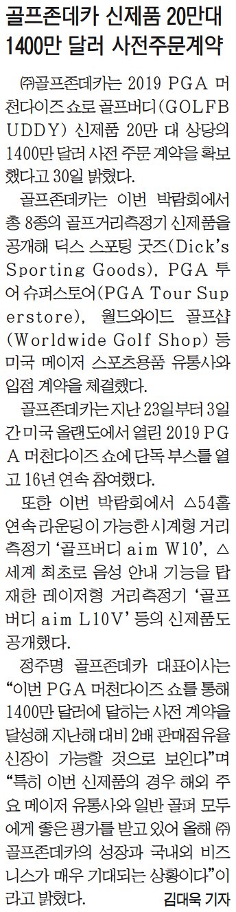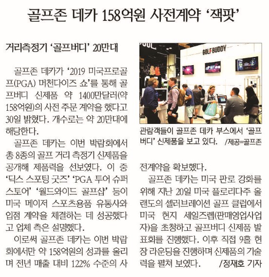 [1월31일골프존뉴딘그룹NEWS]㈜골프존데카, 골프버디 사전계약만 ‘20만대’…약 158억원 수출 성과