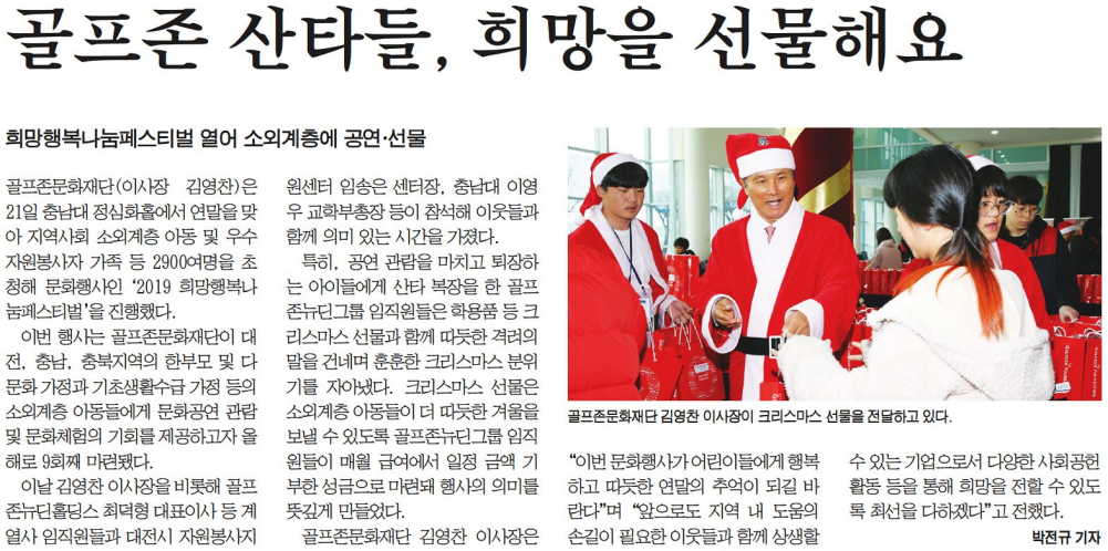 27충청뉴스골프존문화재단, 연말 문화행사 ‘2019 희망행복나눔페스티벌’ 성료온라인