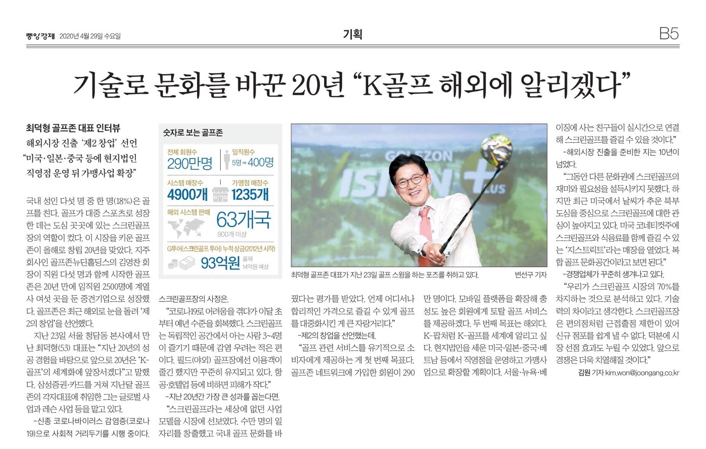 골프존 각자대표로 취임하신 최덕형 대표님의 단독 인터뷰가 중앙일보에 보도되었습니다.