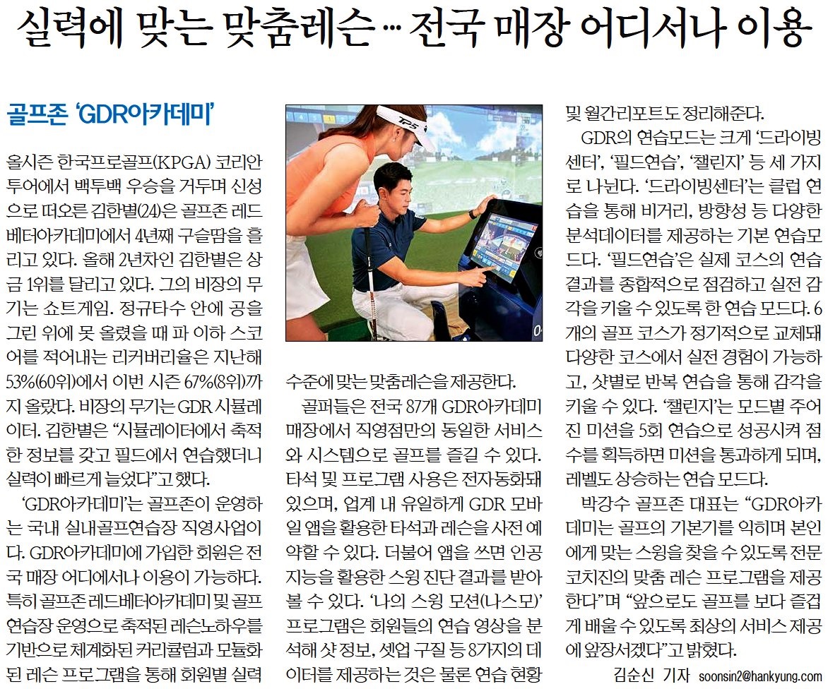 한국경제신문 골프특집에 GDR아카데미가 소개되었습니다. 전국 87개의 GDR아카데미에서 ‘시리어스 골퍼’가 되기 위한 연습환경을 제공하고 있으며
