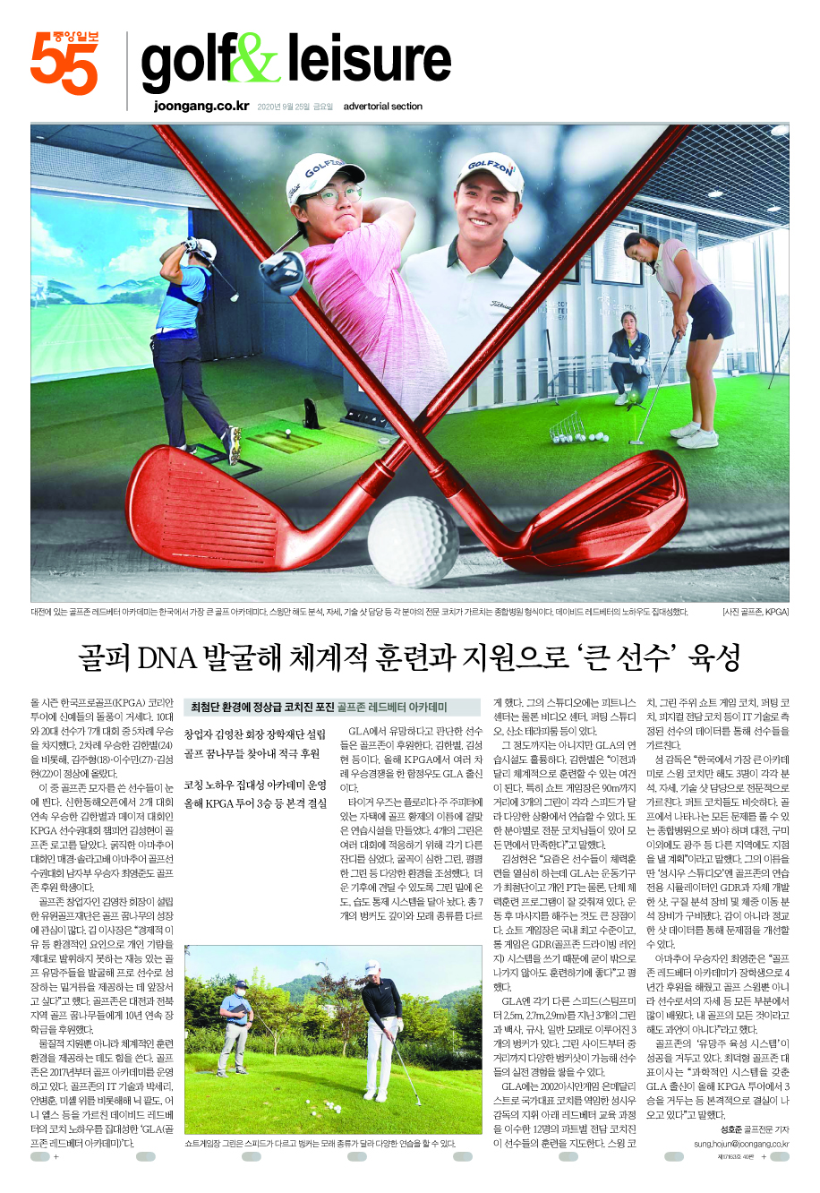중앙일보 골프섹션 1면에 전면 보도 되었습니다. 성시우 감독님께서 골프존 레드베터아카데미는 한국에서 가장 큰 아카데미로 프로골프 선수를 희망하는