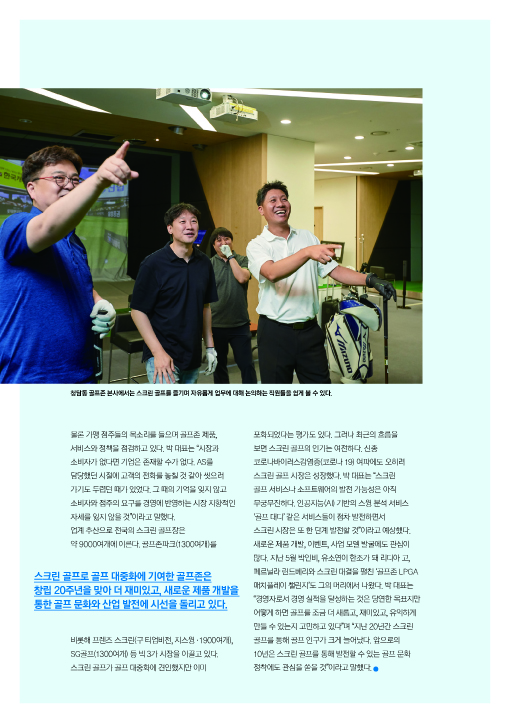 “시장과 소비자가 없었다면 골프존이 존재할 수 없다”며 “점주와 소비자의 목소리를 경영에 반영한 시장지향적 자세”에 대해 언급하셨습니다. 새롭고, 재미있고, 유익한