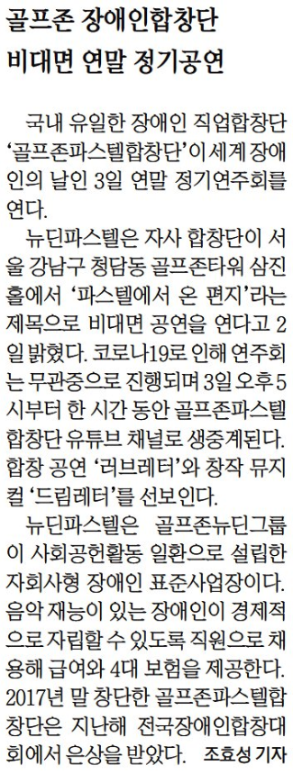 [12월3일 골프존뉴딘그룹News]골프존파스텔합창단,비대면 정기연주회 개최! (12/3, 오늘)