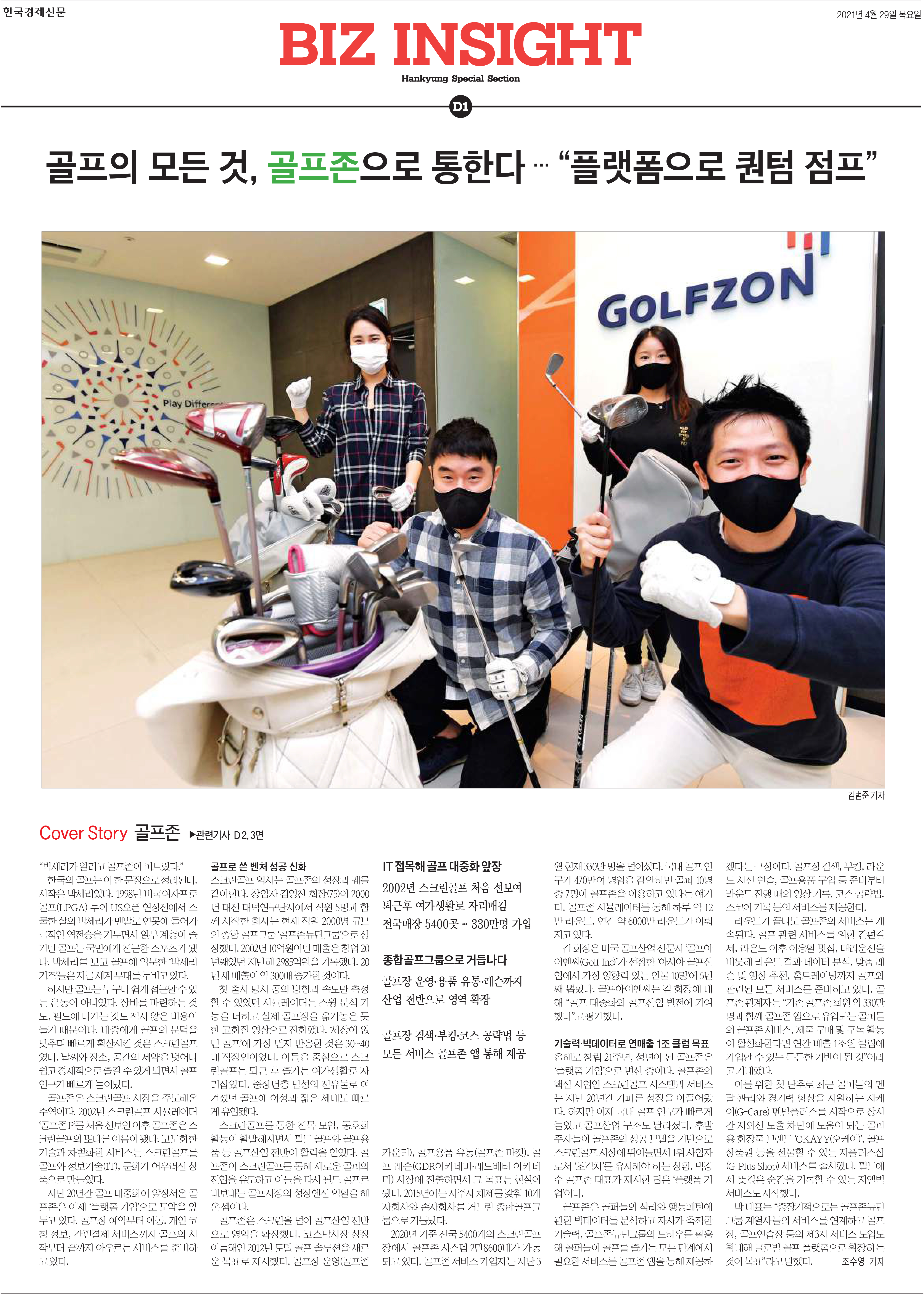 | 1 | 한국경제 | 골프의 모든 것, 골프존으로 통한다…”플랫폼으로 퀀텀 점프” | 지면/온라인 | 제D01면 |