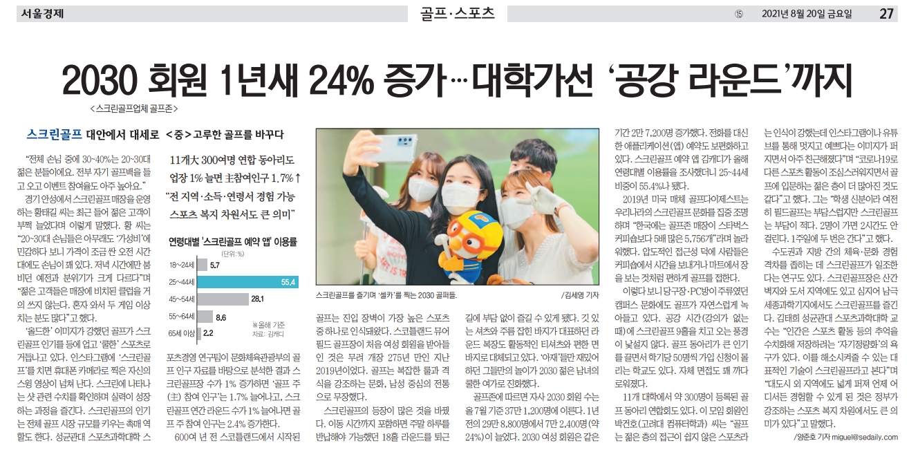[8월23일골프존뉴딘그룹NEWS]<서울경제>‘스크린골프 대안에서 대세로’ 시리즈 상,중,하 기획보도