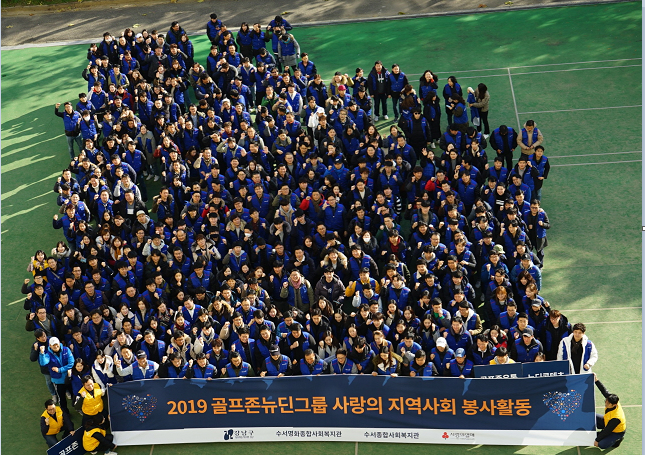 골프존뉴딘그룹은 사랑의 지역사회 봉사활동을 펼쳐 나눔과 배려의 경영철학을 실천했다. (사진은 2019 골프존뉴딘그룹 임직원)