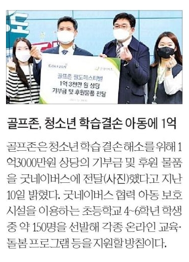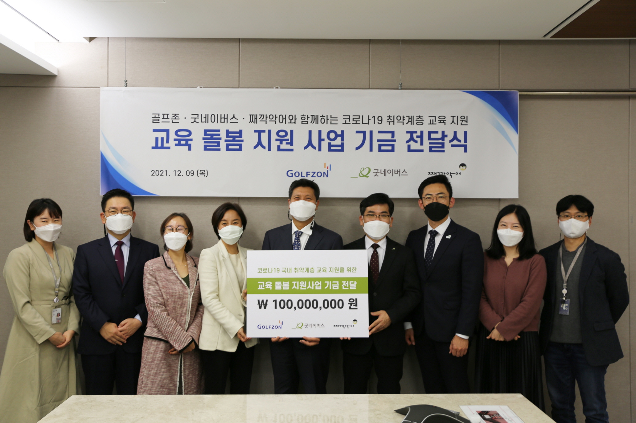 [12월10일골프존뉴딘그룹News]골프존, 코로나19 취약계층 교육 돌봄 지원 사업 기금 1억 원 전달