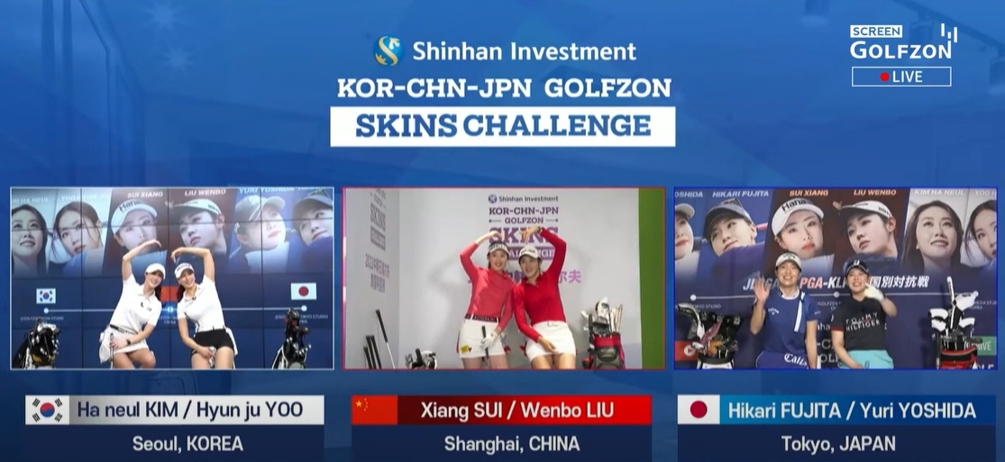골프존이 지난 26일(토) 개최한 ‘신한금융투자 한–중–일 골프존 스킨스 챌린지’에서 한국 팀(김하늘, 유현주)이 연장 접전 끝에 극적인 역전 우승을