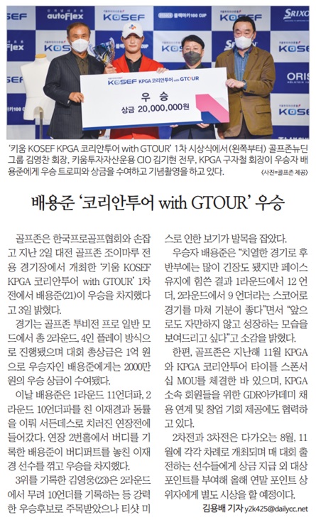[04월03일]골프존 주최 ‘키움 KOSEF KPGA 코리안투어 with GTOUR’ 관련 보도