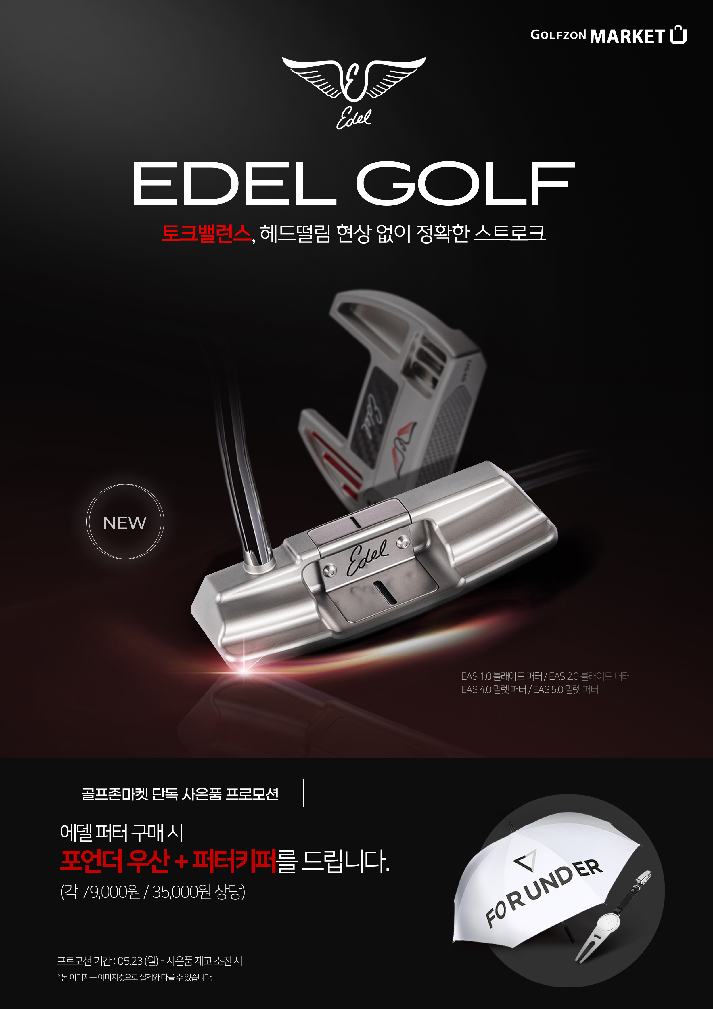 구매 프로모션도 진행된다. 에델 EAS 퍼터 구매 시 골프존마켓 단독 사은품인 약 8만 원 상당의 포언더 골프우산과 약 3만 원 상당의 퍼터키퍼가 제공돼 주목할 만하다.