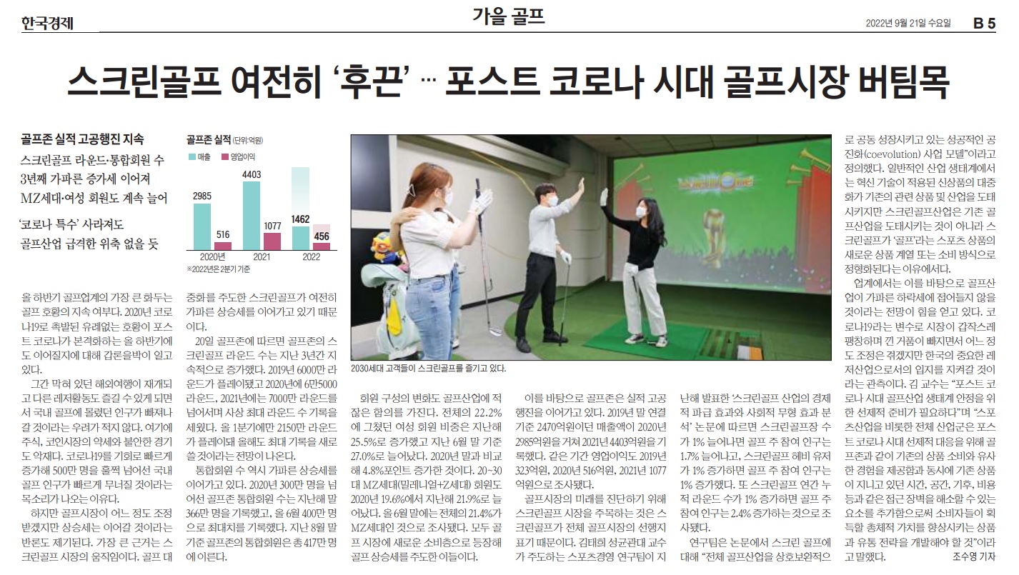[09월21일]스크린골프 여전히 ‘후끈’ 포스트코로나 시대 골프시장 버팀목 _한국경제