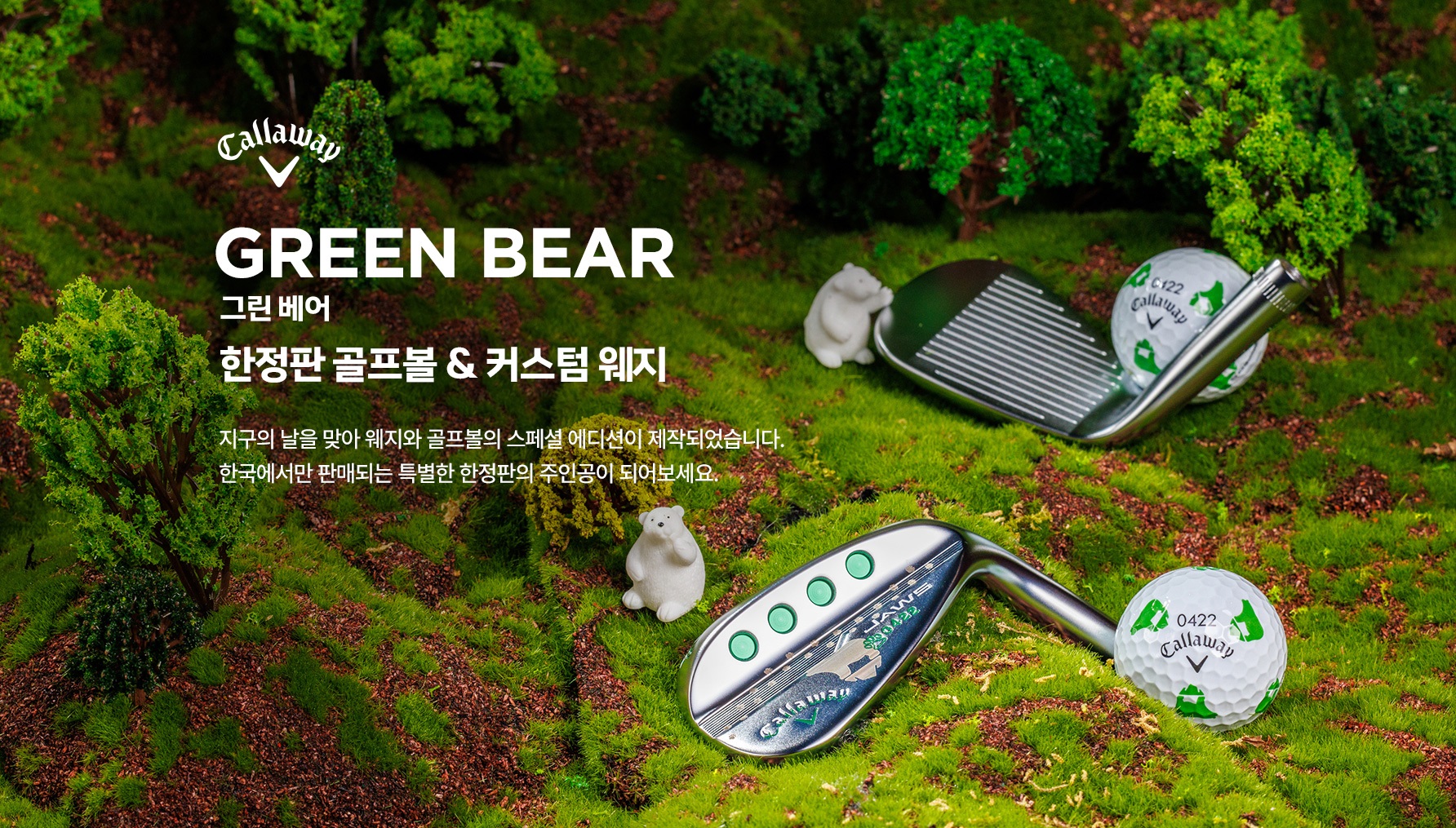 ‘그린 베어 스페셜 에디션’에 해당하는 골프볼(크롬소프트) 및 웨지(죠스 MD5)는 4월 22일 ‘세계 지구의 날’을 맞아 캘러웨이골프 코리아에서 제작됐으며,