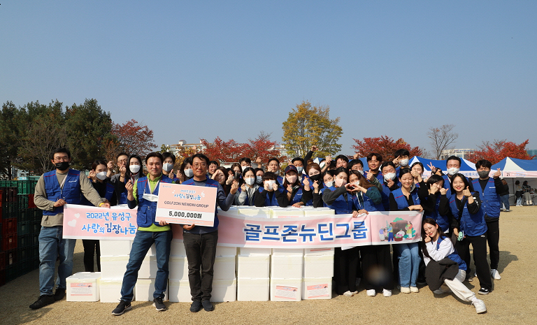 골프존뉴딘그룹 (골프존카운티, 골프존조이마루, 골프존문화재단)이 대전지역에서 시행된 <유성구 사랑의 김장 나누기>에 동참하며 이웃 사랑을 실천했다는