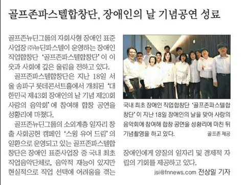 #골프존파스텔합창단, #뉴딘파스텔, #골프존뉴딘그룹, #장애인직업합창단, #장애인일자리, #장애인표준사업장, #김영찬회장, #장애인의날