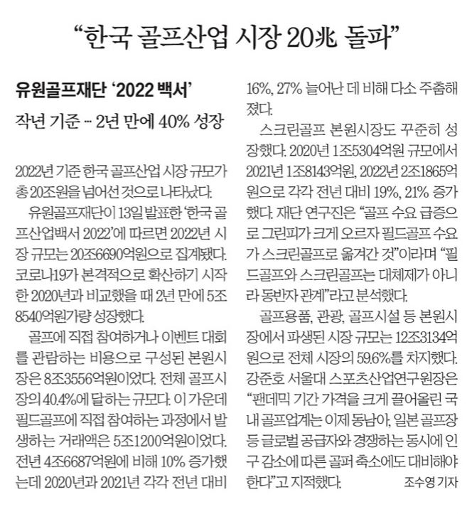 1YTN[스포츠]”2022년 국내 골프시장 규모 20조 6,690억 원” [한국 골프산업백서]