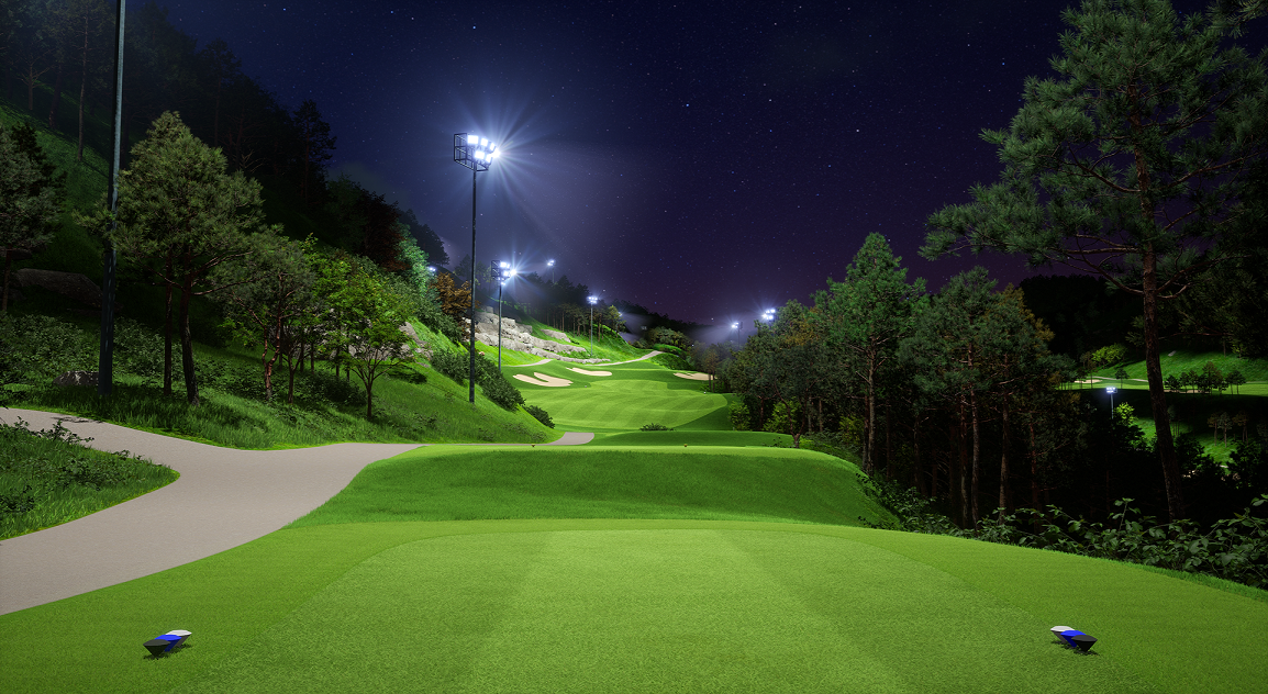 사진2. 골프존이 2024년 투비전NX 업그레이드를 진행했다고 밝혔다. 사진은 투비전NX 야간라운드 화면.
