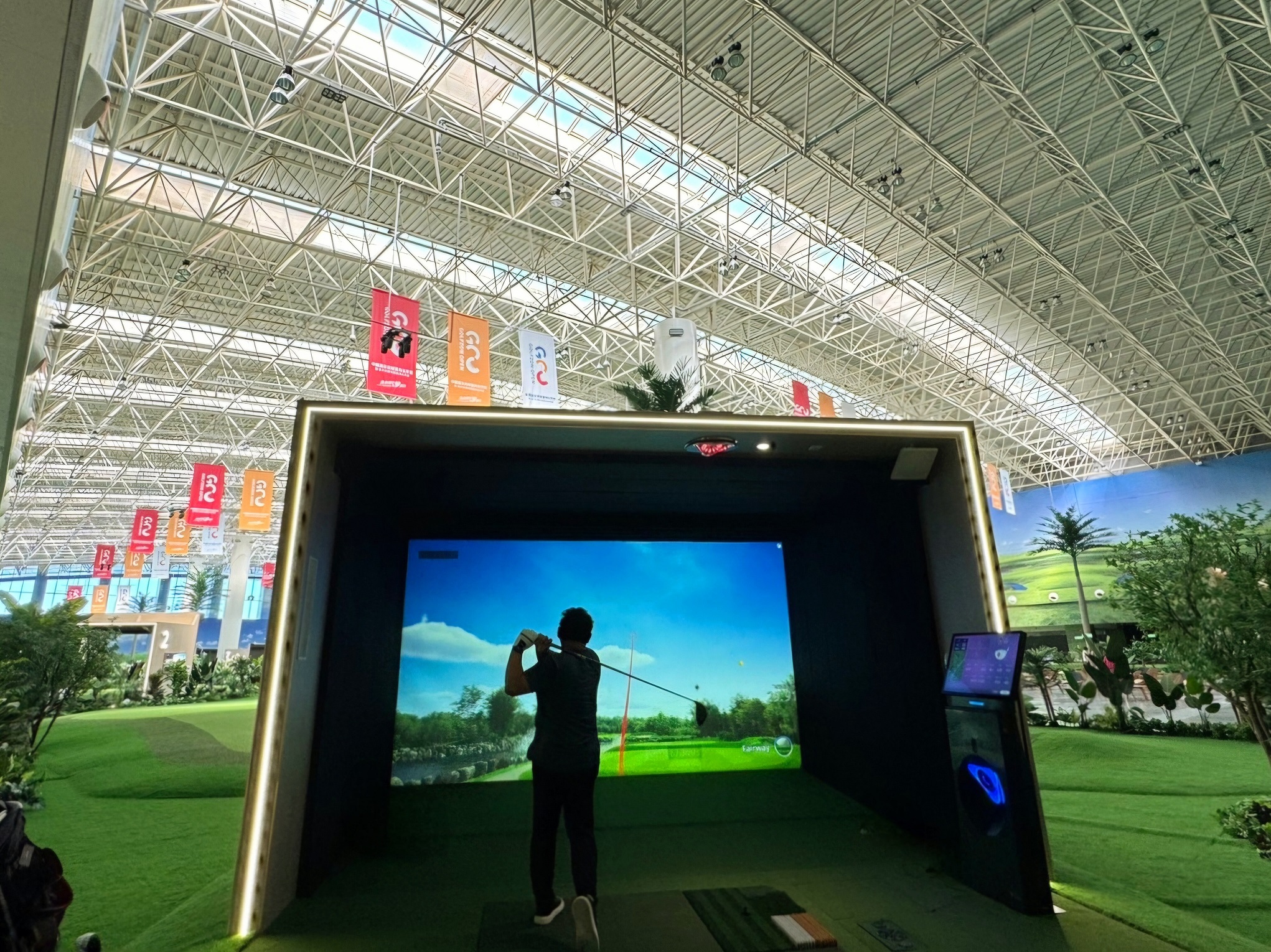 사진1. 골프존이 중국 천진 매강 컨벤션 센터 실내에 5000평 규모로 공개한 도심형 골프장 ‘천진 시티골프’ 전경