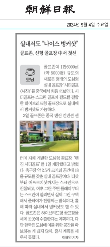 안녕하세요 새로운 도심형 골프장 ‘시티골프(CITY GOLF)’를 중국 천진에서 9월 1일 첫 선보였습니다.