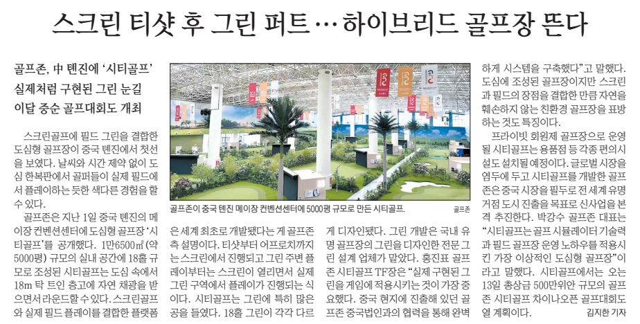 도심형 골프장 ‘시티골프’ 신사업 공개 | 1 | 매일경제 | 지면/온라인 | A27면 | |