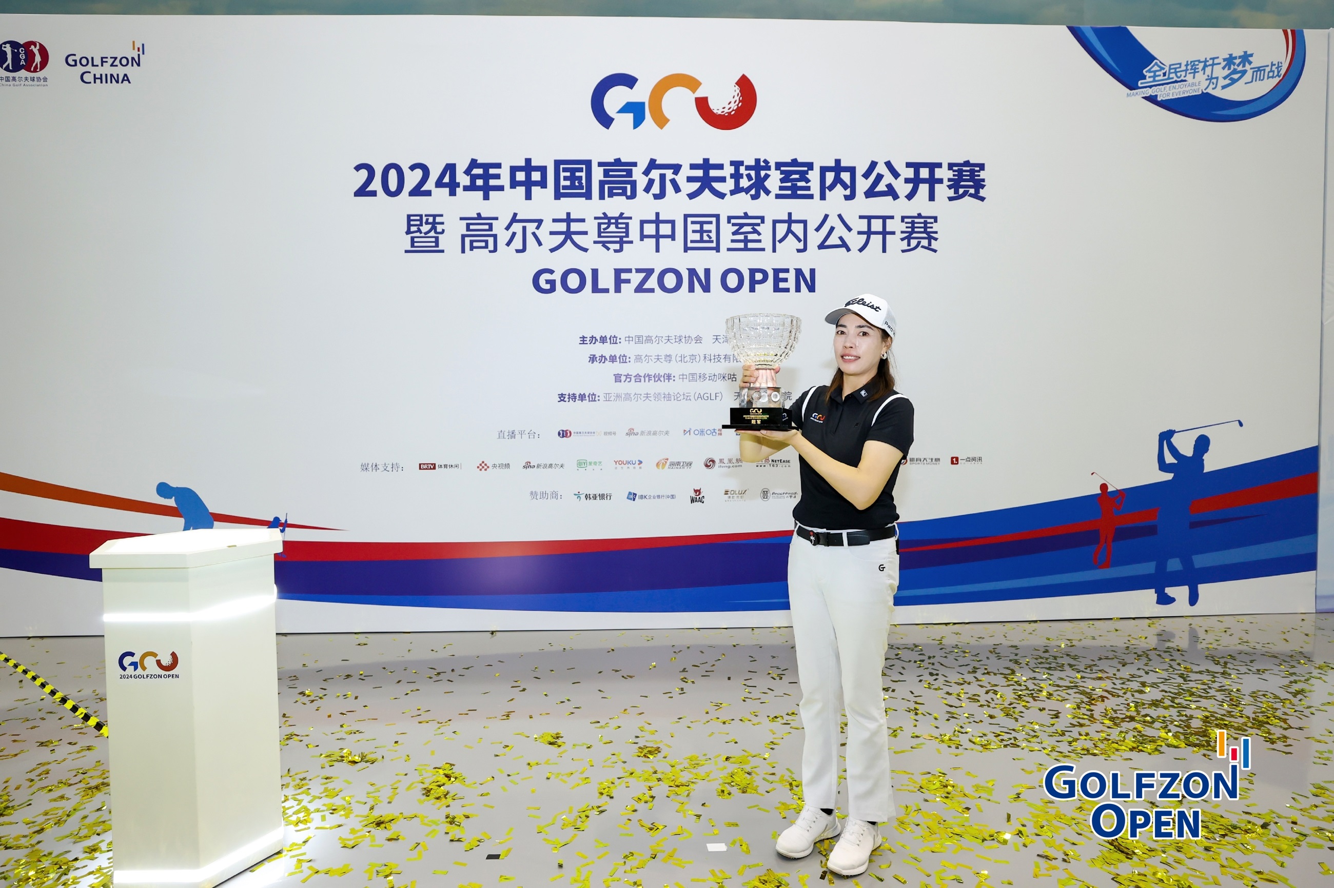 사진3. ‘2024 골프존 시티골프 차이나 오픈’ 대회 시상식에서 우승자 옌판판 선수가 기념 촬영을 하고 있다.
