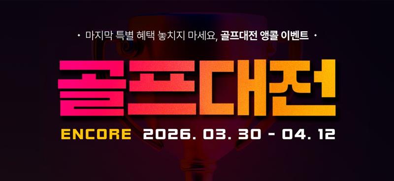 ‘골프대전’의 연장 프로모션인 ‘골프대전 앵콜 이벤트’를 3월 30일부터 4월 12일까지 진행합니다.